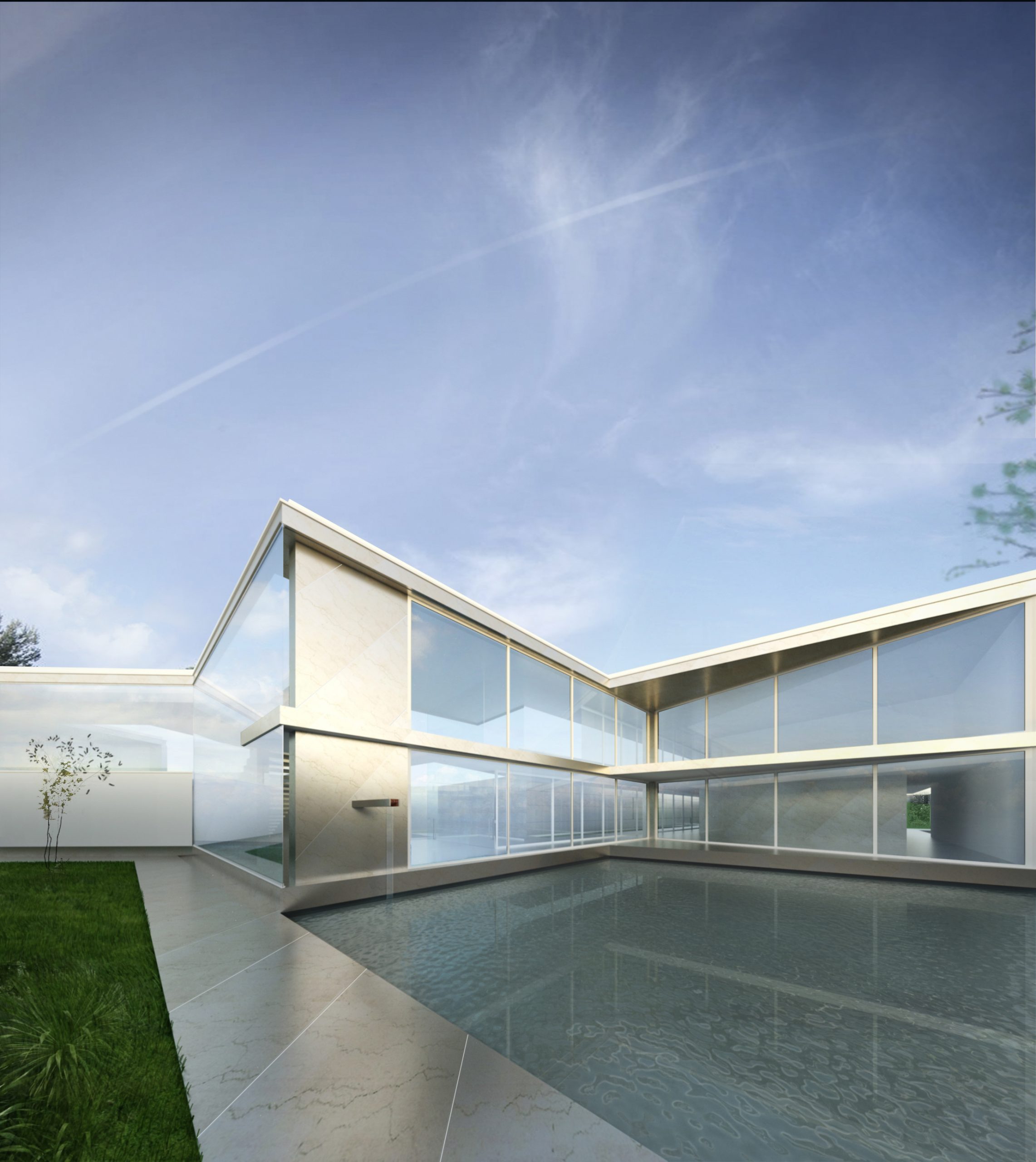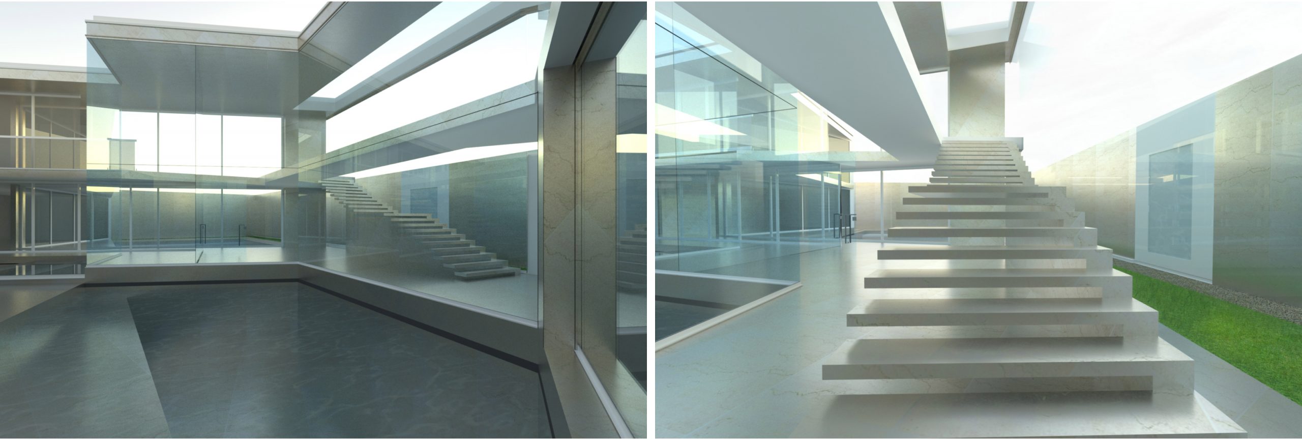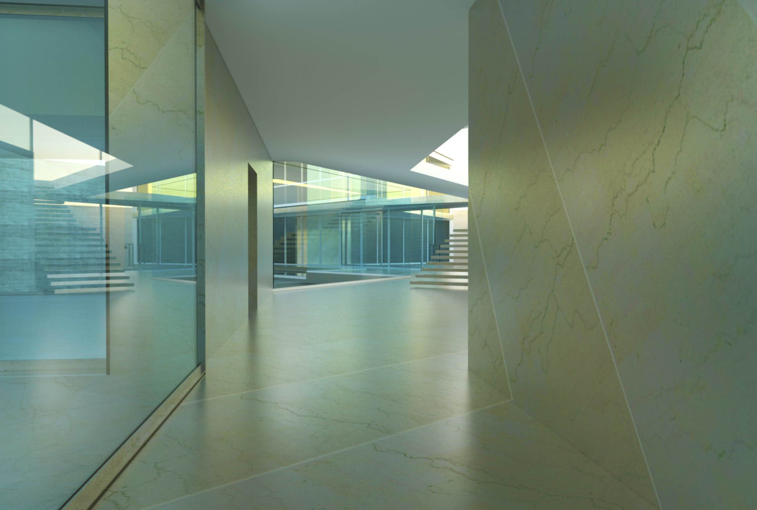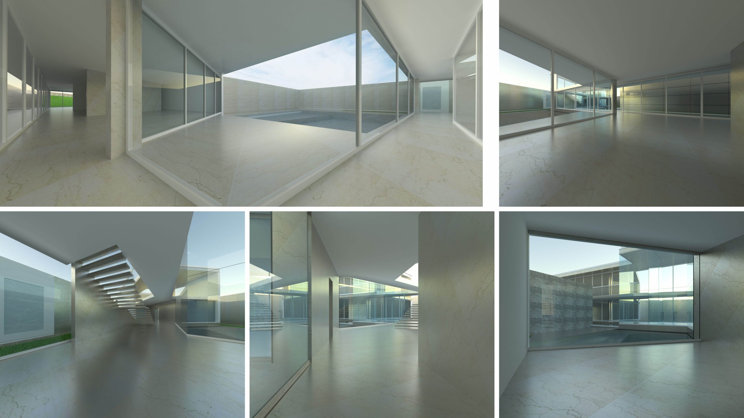 Apesar do edifício se encontrar maioritariamente materializado em vidro o espaço organiza-se conforme o grau de privacidade necessária ao desenrolar das diferentes actividades da vida no interior.