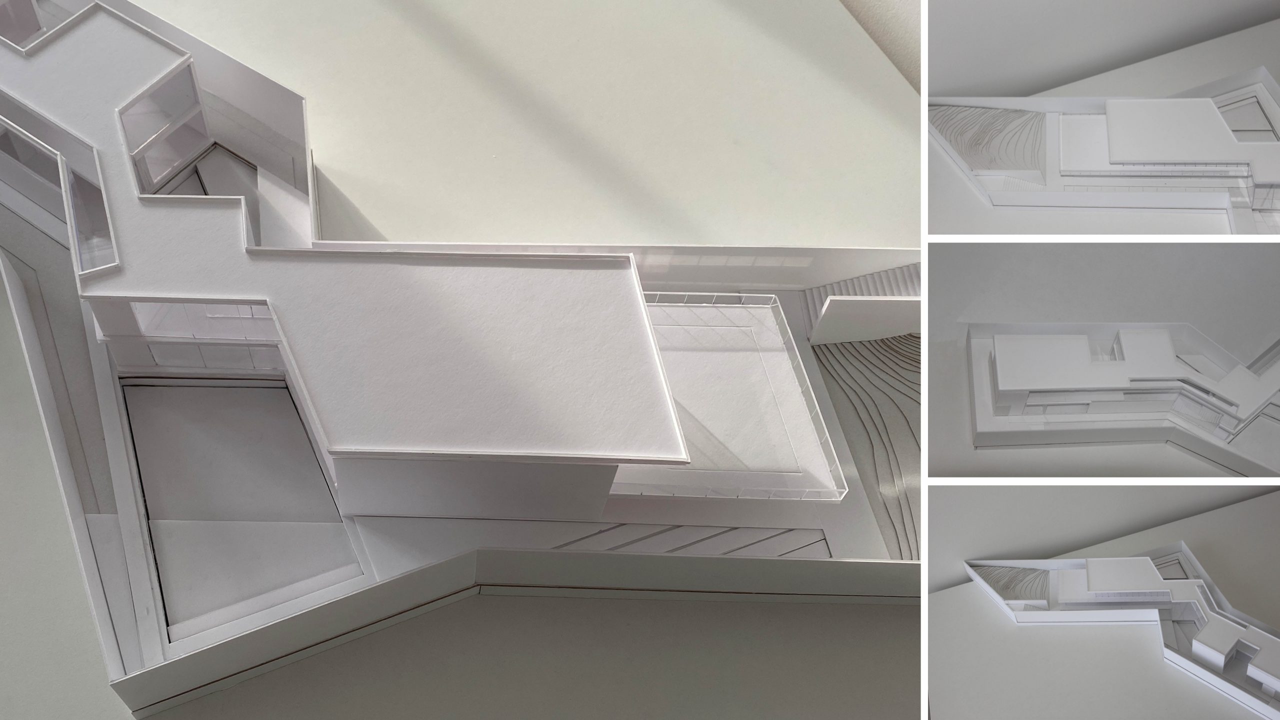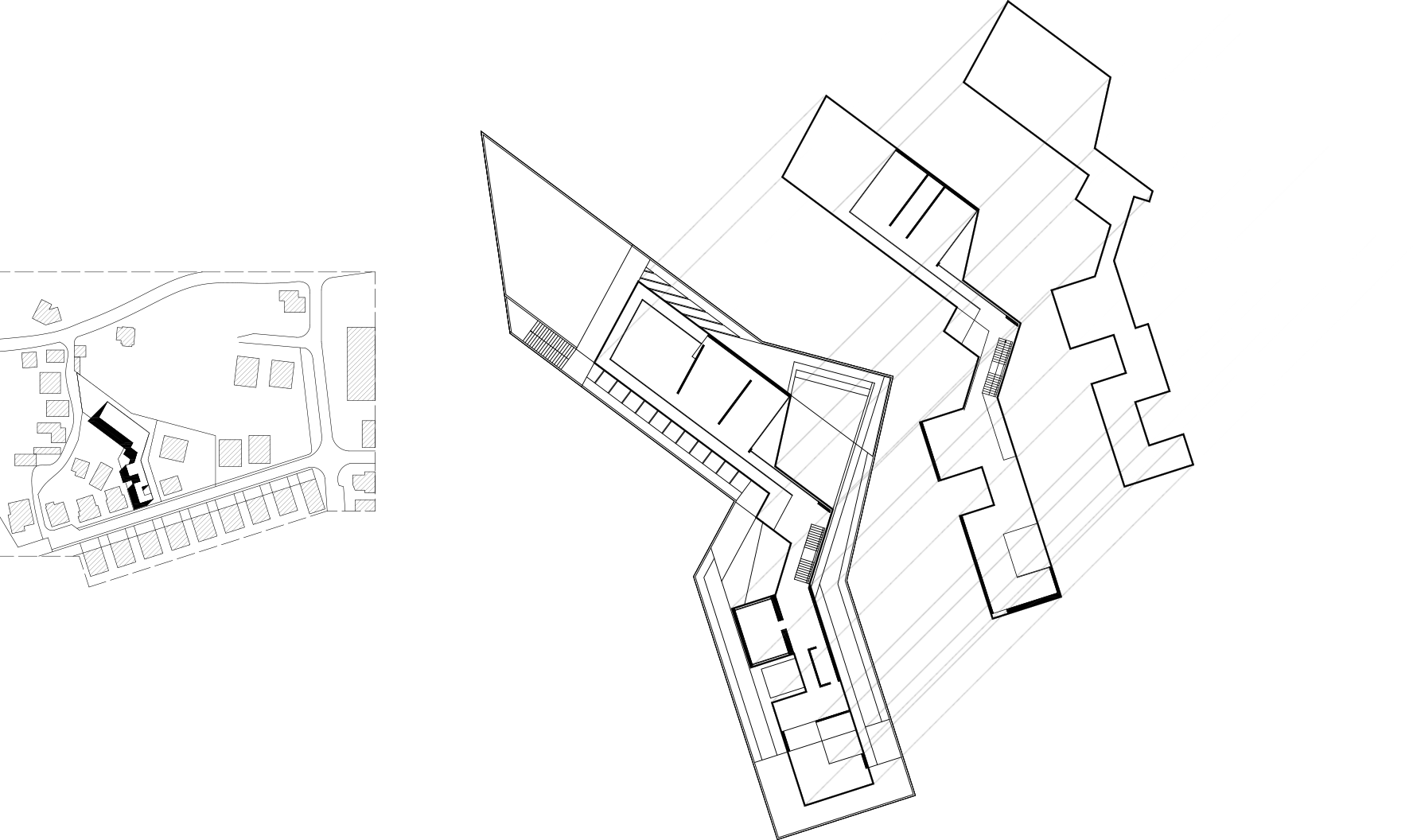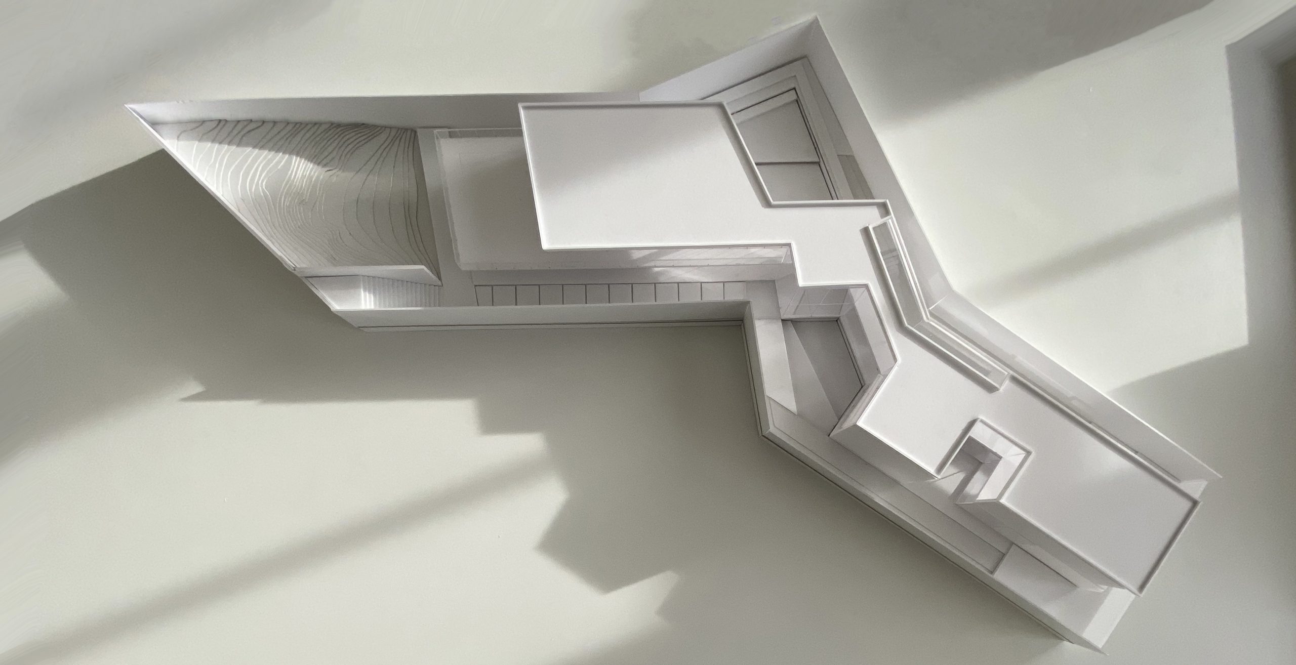 Assim, com naturalidade a volumetria nasce da morfologia do terreno. A proposta surge em parte como resultado dessa análise, especificamente da configuração do lote, e da sua relação com a envolvente.